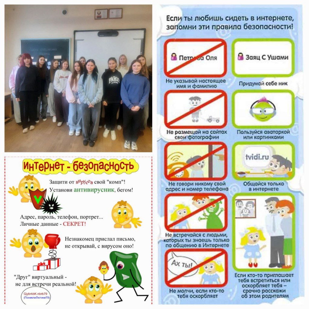 В ходе занятия учащиеся беседовали об опасностях в сети, таких как кибербуллинг, мошенничество, вредоносные программы и неприемлемый контент, а также о способах защиты: использовать сложные пароли, не делиться личной информацией, проверять ссылки и файлы, использовать антивирусы и внимательно относиться к предложениям в интернет.