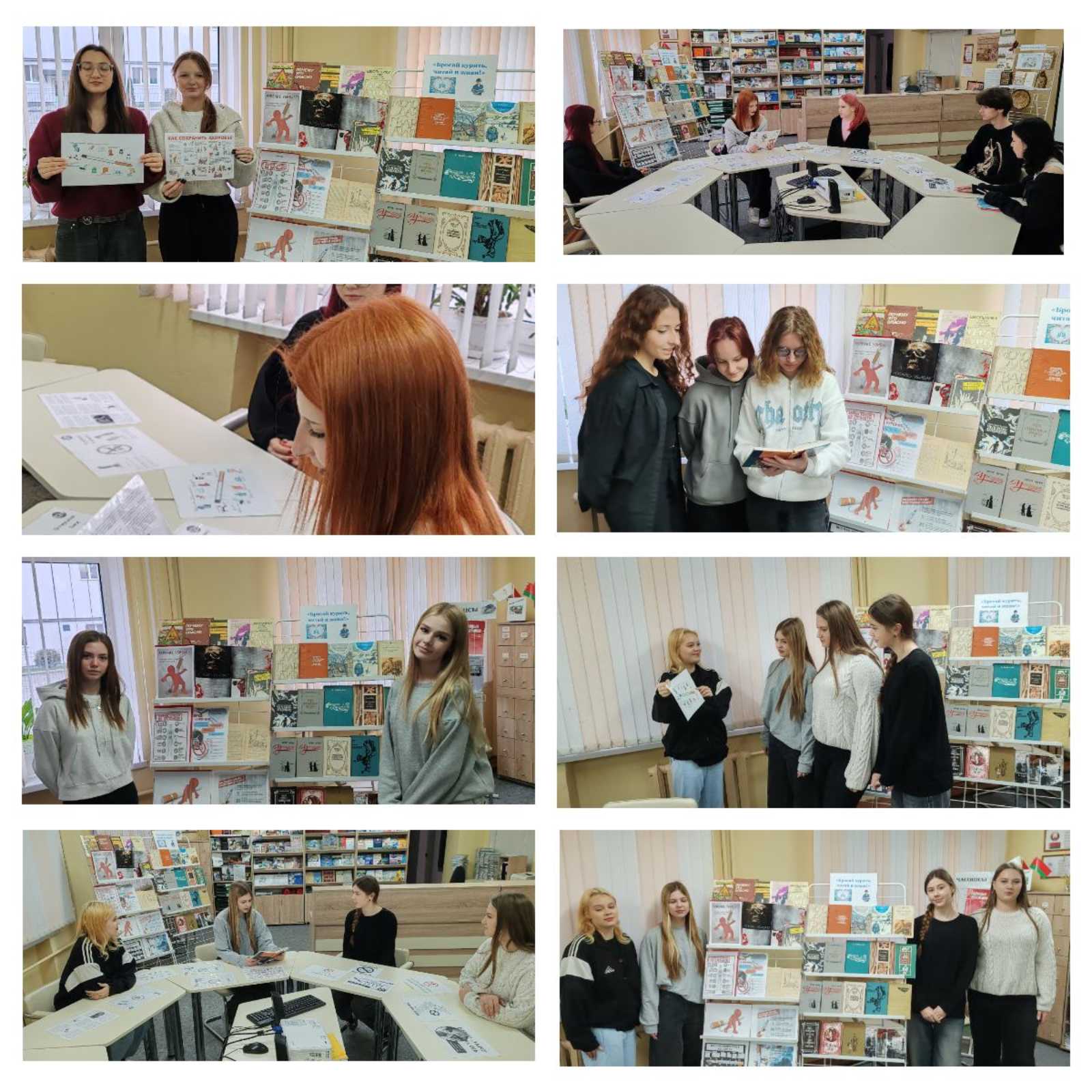 На выставке учащиеся знакомятся печатной информацией о вреде курения, подборкой книг на данную тему, а также с художественной литературой, герои которой сильные духом и преодолевают трудности жизни.