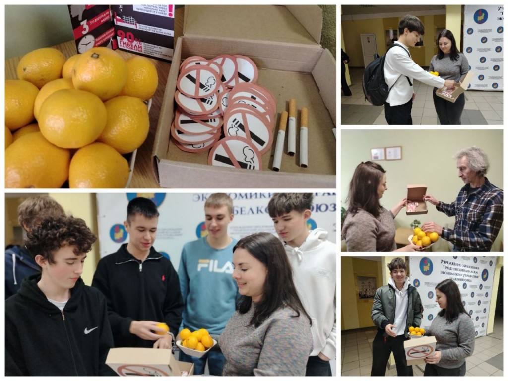 21 ноября 2025 года в рамках недели профилактики употребления табачных изделий, электронных сигарет «Мир без табачного дыма» в колледже прошла акция «Меняю сигарету на фрукт». Участникам акции, которыми стали не только учащиеся, но и сотрудники колледжа, предлагали отказаться от пагубной привычки и выбрать полезную альтернативу.