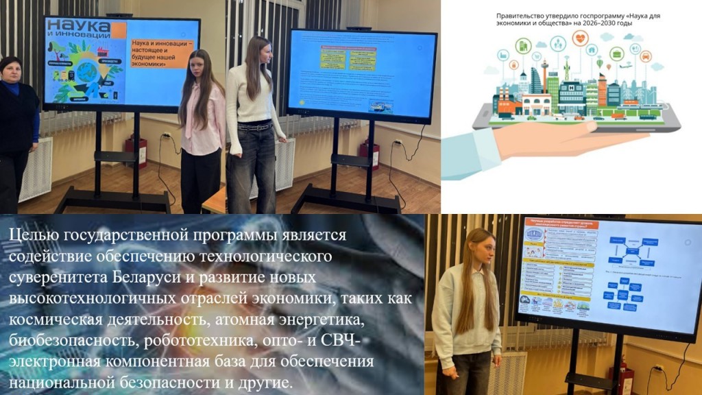 27 января 2026 года куратором 25 Б-Б группы Сакович А.Г. проведен информационный час на тему «Наука и инновации – настоящее и будущее нашей экономики».