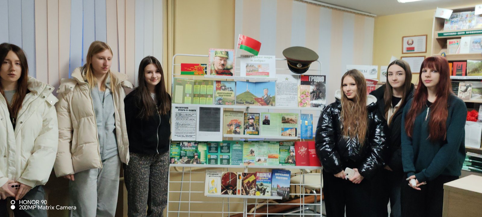 В преддверии Дня защитника Отечества, в читальном зале библиотеки проводится выставка — обзор «На страже мира и добра». Цель: формирование у учащихся патриотического сознания, готовности выполнения гражданского долга по защите родины. Посетителям предоставляется возможность ознакомиться с информацией об истории возникновения данного праздника, образом присяги, буклетами с перечнем военных учебных заведений Республики Беларусь, монографией преподавателя А. Н. Родионова «Военное образование на гродненщине» и другими литературными произведениями.