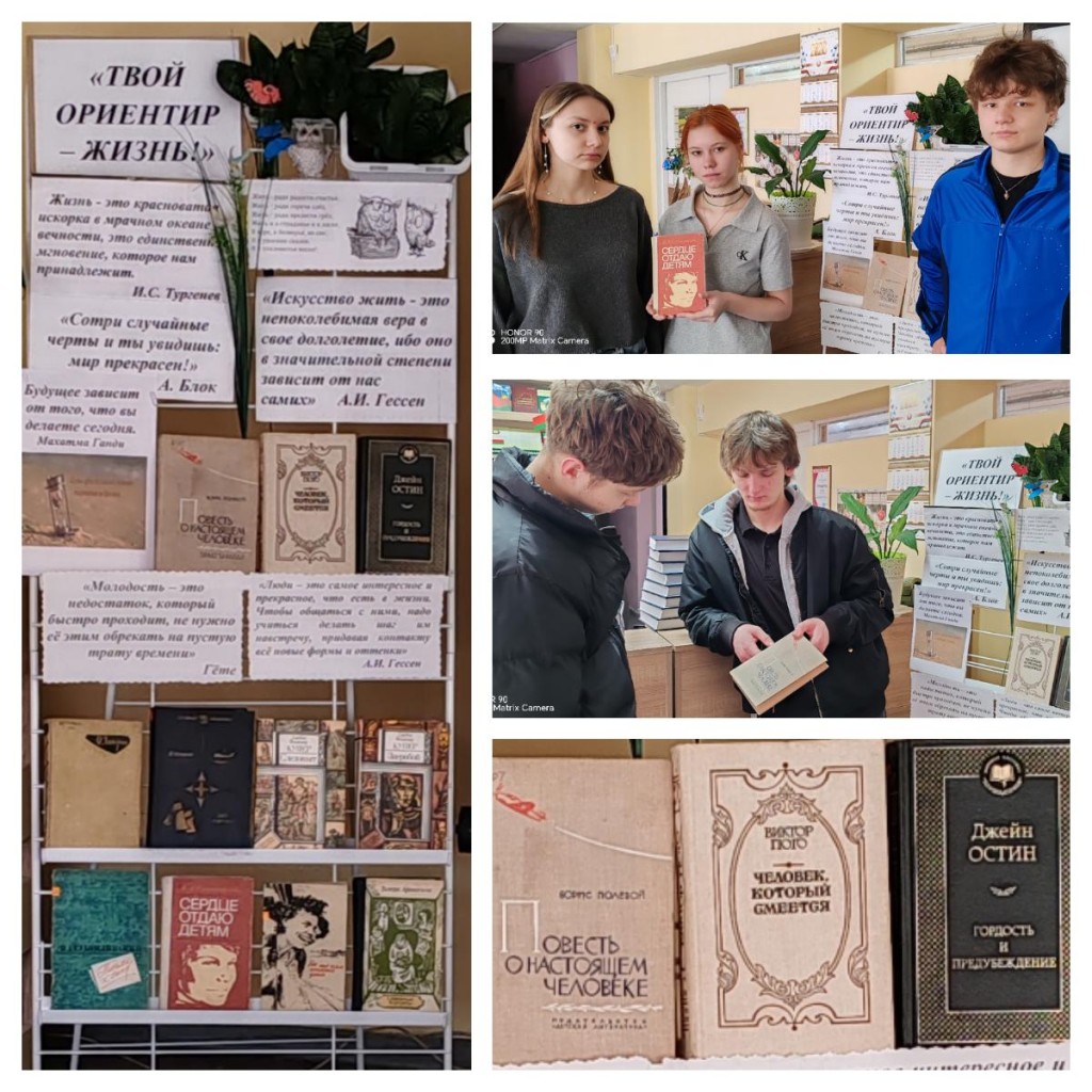 С 10 марта по 10 апреля текущего года в читальном зале библиотеки проводится выставка – обзор «Твой ориентир – жизнь», направленная на укрепление психоэмоционального состояния учащихся колледжа. Представленная на выставке художественная литература рассказывает о том, как важно каждому из нас научиться превращать наши темные оттенки каждого дня в светлые и выделять те моменты жизни, благодаря которым мы становимся интереснее, сильней, успешней. Прочитав в книгах, о трудностях жизненных ситуаций главных героев, мы понимаем, что наши затруднительные ситуации смешны и пусты, что нет нечего дороже жизни.