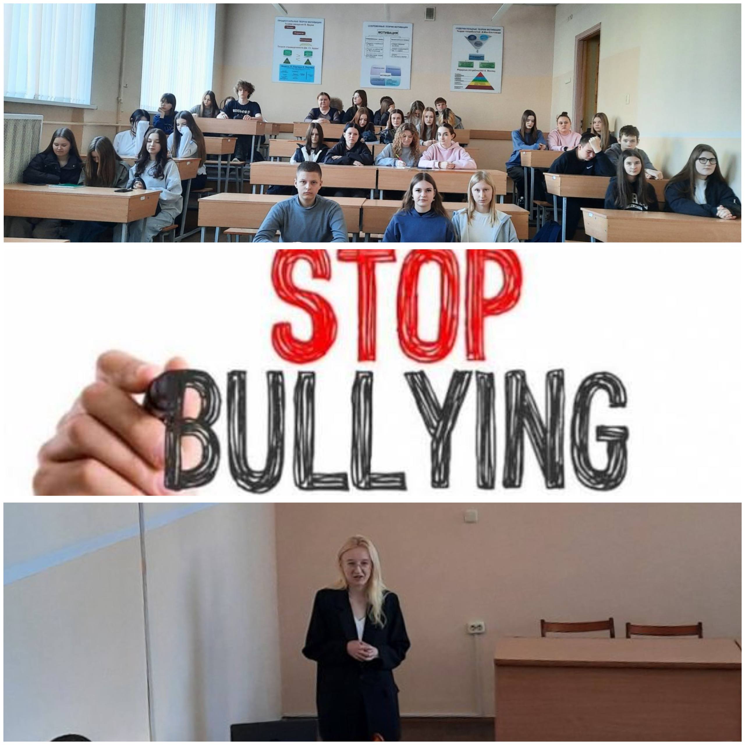 30.03.2026 педагогом-психологом Куцко Л.А. было проведено выступление перед учащимися 13 Э-Б и 14 М-Б группы на тему: «Буллинг, его виды и последствия.» В ходе выступления педагог-психолог рассказала о физическом, вербальном, социальном и кибербуллинге. Учащиеся были осведомлены об основных характеристиках жертвы и агрессора. Также были рассмотрены последствия для жертвы, агрессора и наблюдателей.