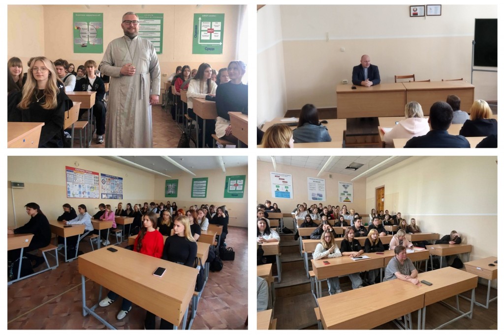 24 сентября 2025 года в колледже прошла встреча учащихся 2 курса дневной формы получения образования со священниками: отцом Георгием Панфиловым прихода в честь иконы Божьей Матери «Взыскание погибших» г. Гродно и с ксендзом Виктором Ханько прихода Матери Божьей Трижды Предивной г. Мосты на тему «Семья – главный фундамент личностного роста учащегося». Мероприятие было посвящено обсуждению традиционных моделей семьи и духовно-нравственных ориентиров в современном мире.