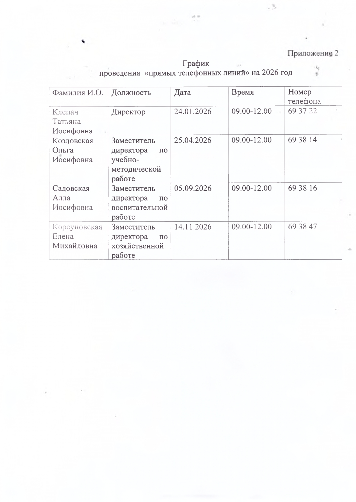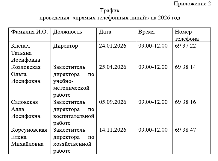 График проведения «прямых телефонных линий»