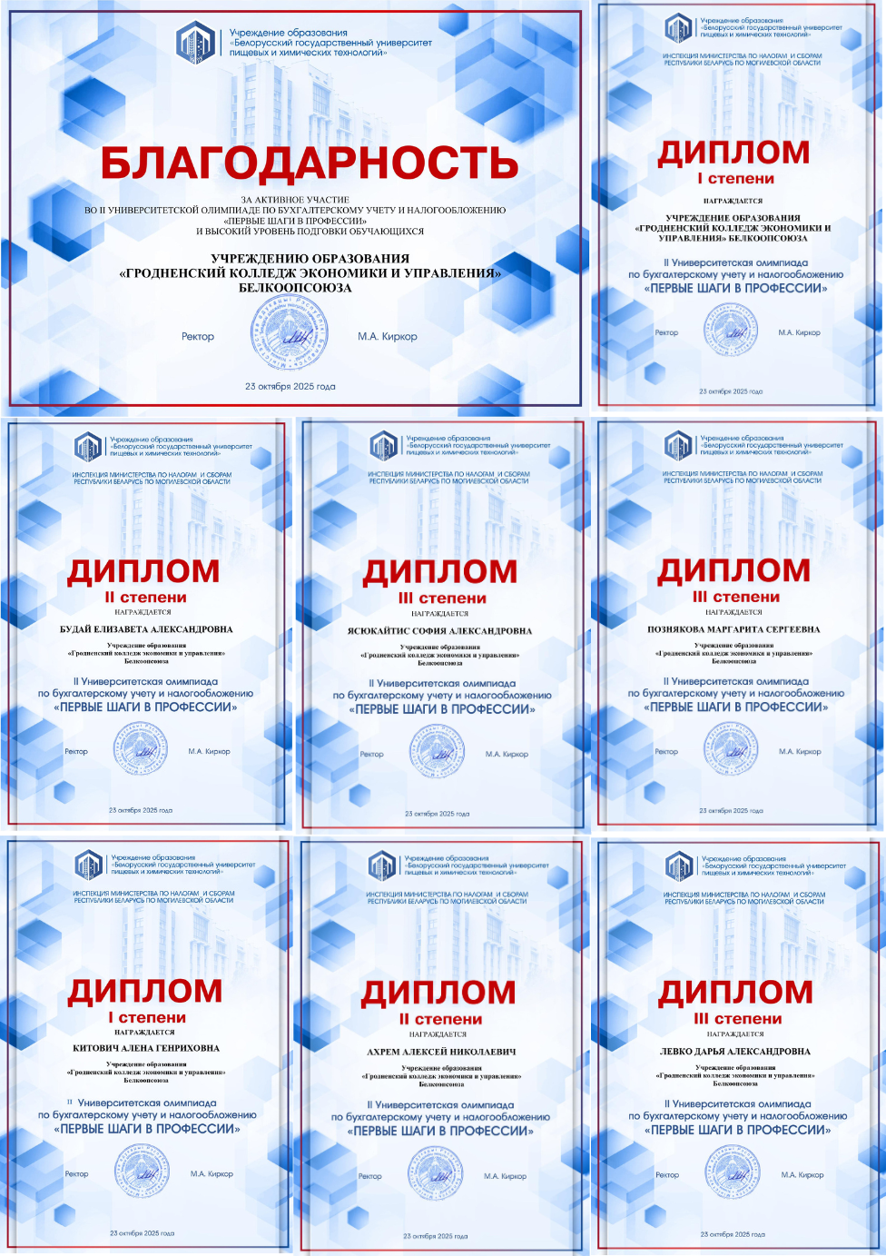 Учащиеся колледжа приняли участие во II университетской олимпиаде по бухгалтерскому учету и налогообложению «Первые шаги в профессии». По итогам интеллектуального состязания они продемонстрировали высокий уровень знаний и профессиональных навыков, заняв I место и получив Диплом I степени.