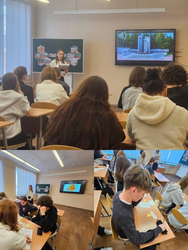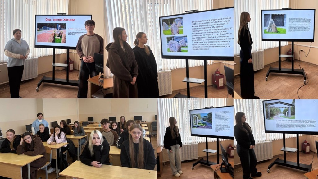 18 марта 2026 года, в преддверии Дня памяти жертв Хатынской трагедии, руководитель по военно-патриотическому воспитанию Чайковская Е. В. провела для учащихся 24М-Б группы урок- памяти на тему «И помнить страшно, и забыть нельзя». Учащиеся также посмотрели документальный фильм «И будет жить Хатынь», который углубил их понимание исторических событий и значимости памяти о жертвах трагедии.