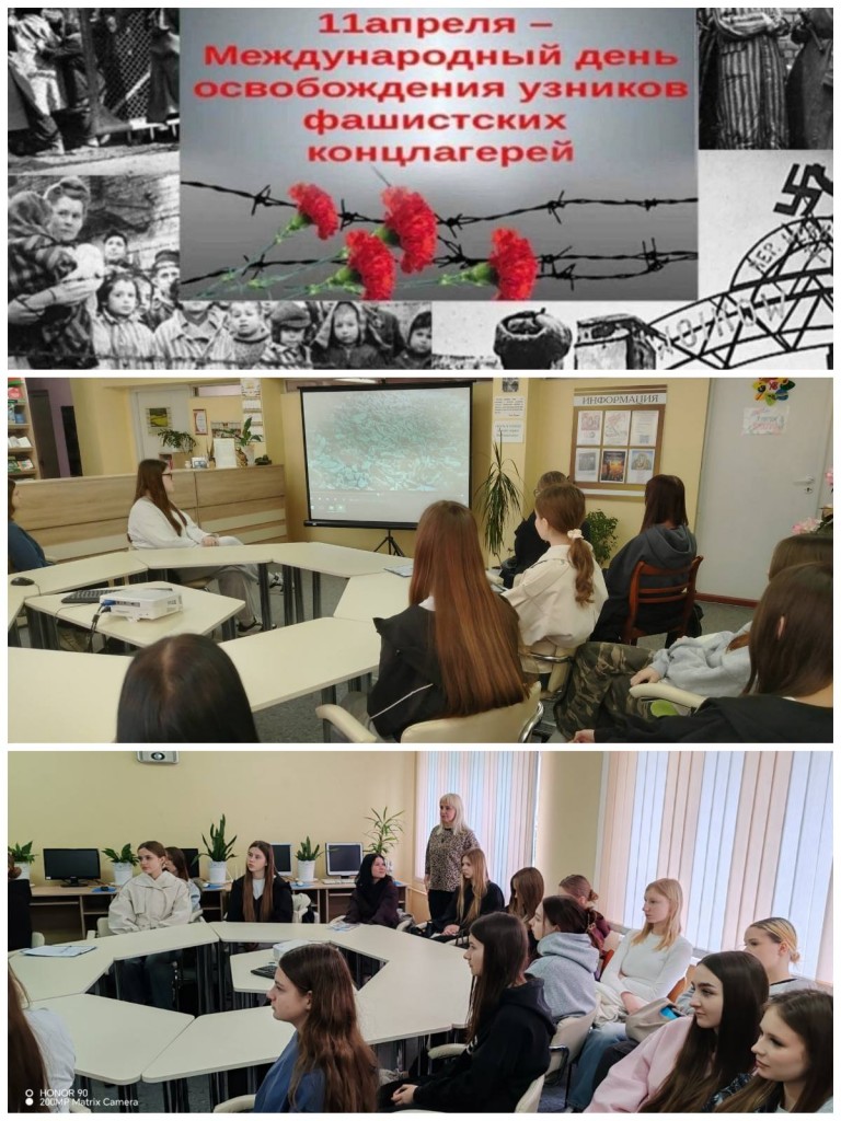 8 апреля, в преддверии Международного дня освобождения узников фашистских концлагерей, руководитель по военно-патриотическому воспитанию Чайковская Е. В. провела урок памяти для учащихся 14 М-Б группы на тему «Нам нужно помнить этот день». В ходе урока был организован просмотр документального фильма «С надеждой на свободу», который подчеркнул важность памяти тех страшных событий.