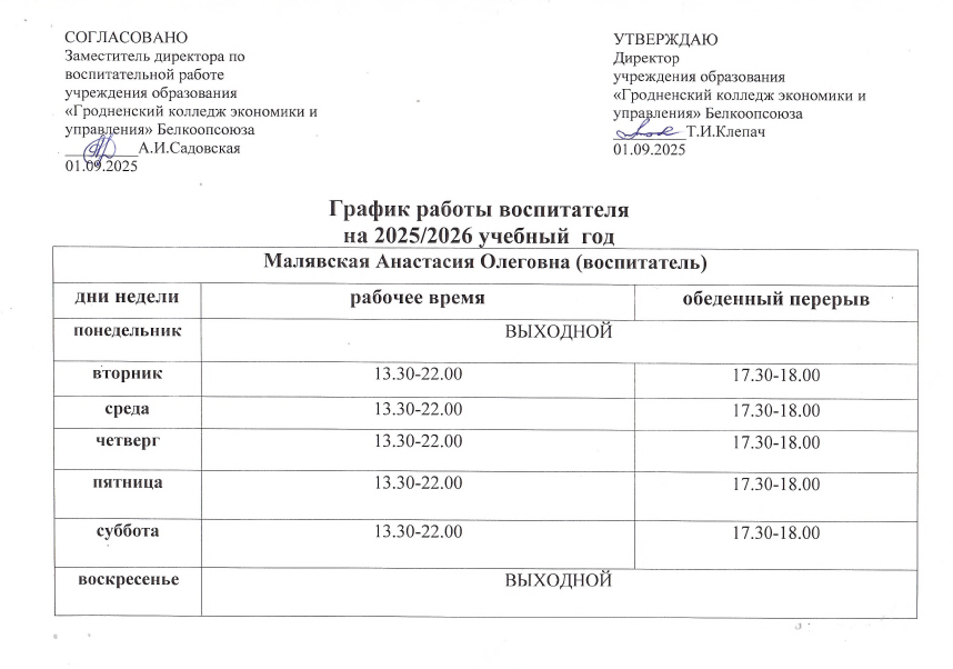 В общежитии работает воспитатель — Малявская Анастасия Олеговна