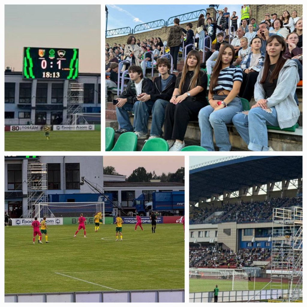 20 сентября 2025 года воспитатель Малявская А.О. вместе с учащимися колледжа посетили матч между «Неман» и «МЛ Витебск» в рамках Чемпионата Беларуси по футболу. Игра прошла на стадионе в Гродно и вызвала большой интерес у ребят. Учащиеся с удовольствием наблюдали за матчем и поддерживали команды. Посещение стало полезным опытом, развивающим интерес к спорту и командной работе.
