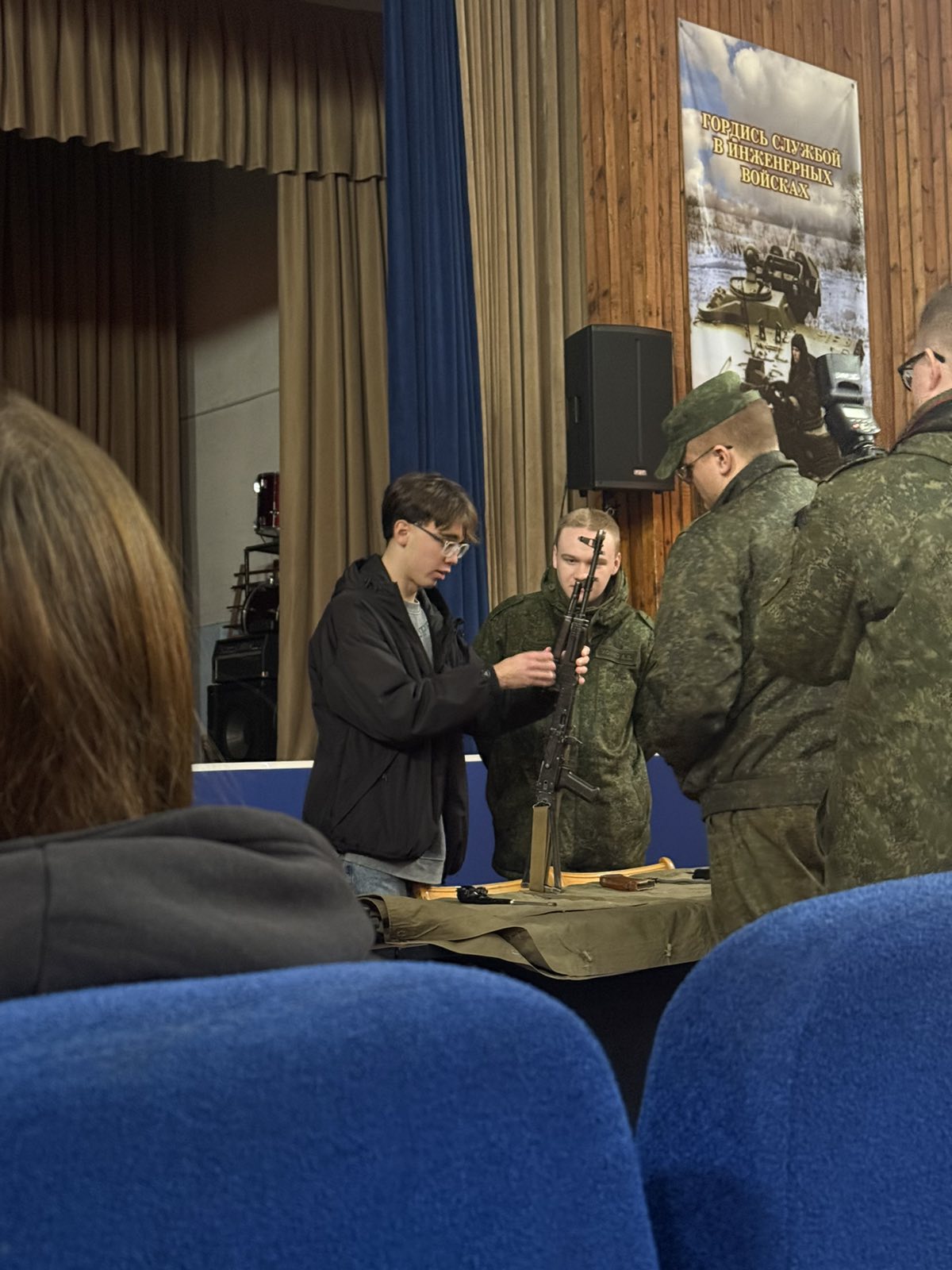 В рамках мероприятия учащиеся ознакомились с бытом военнослужащих и условиями их службы, Изучили образцы современной военной техники. Познакомились с работой кинологической службы, приняли участие в практическом занятии по сборке и разборке автомата, а также освоили основы работы с металлоискателем, применив знания на практике.