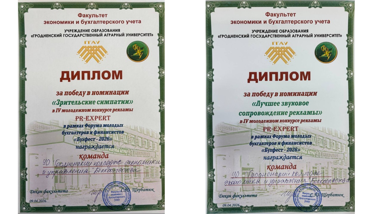 09 апреля 2026 года учащиеся 22 Фн-Б группы приняли участие в Форуме молодых бухгалтеров и финансистов «Бухфест-2026», организованном факультетом экономики и бухгалтерского учета УО «Гродненский государственный аграрный университет». Данное мероприятие проводилось с целью повышения уровня подготовки специалистов в области экономики, финансов, бухгалтерского учета, а также оказания молодежи личностно-ориентированной помощи в выявлении способностей и склонностей, профессиональных и познавательных интересов в выборе профессии.