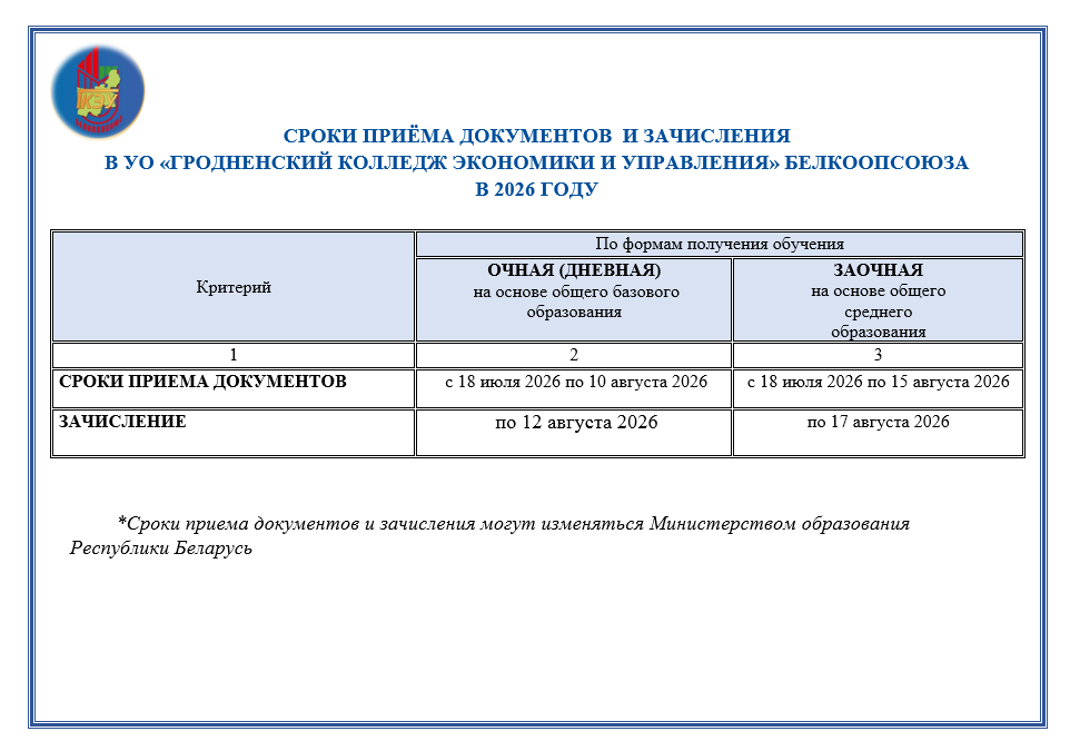 Сроки приема документов