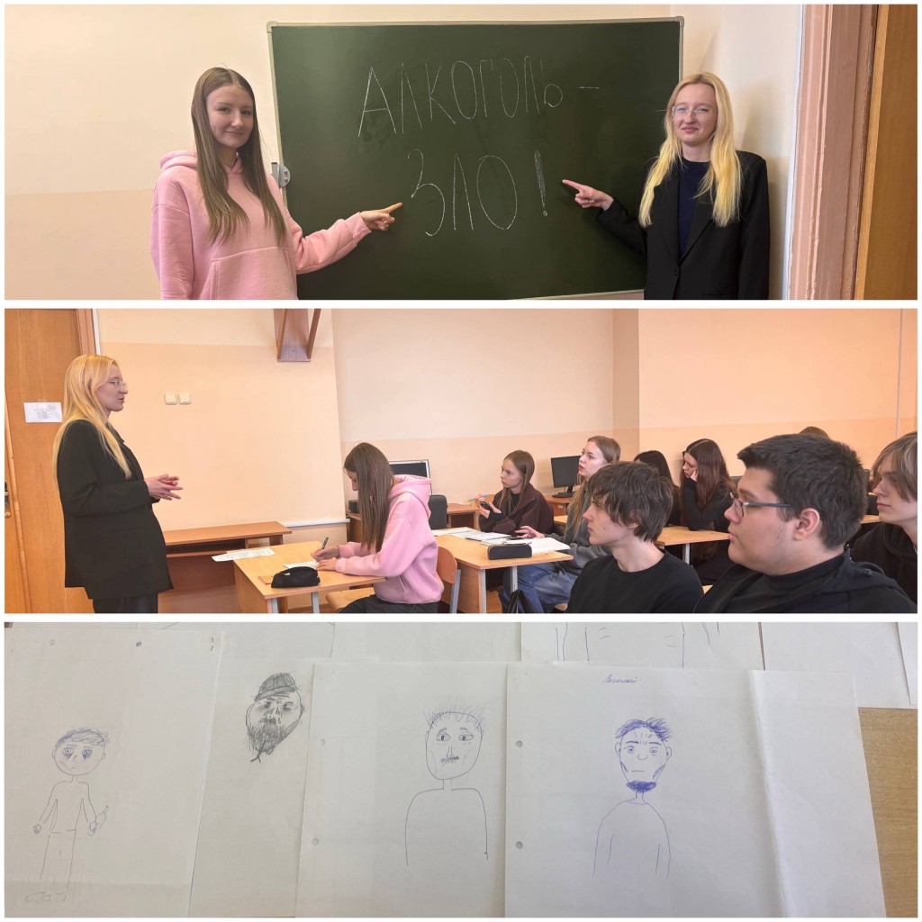 25.02.2026 педагогом-психологом Куцко Л.А. было проведено тренинговое занятие с 25 Б-Б группой, направленное на профилактику алкоголизма. Учащиеся совместно с педагогом-психологом обсудили мифы об алкоголе. Также с помощью рисуночной техники были рассмотрена последствия частого употребления алкоголя на внешность и жизнь человека.