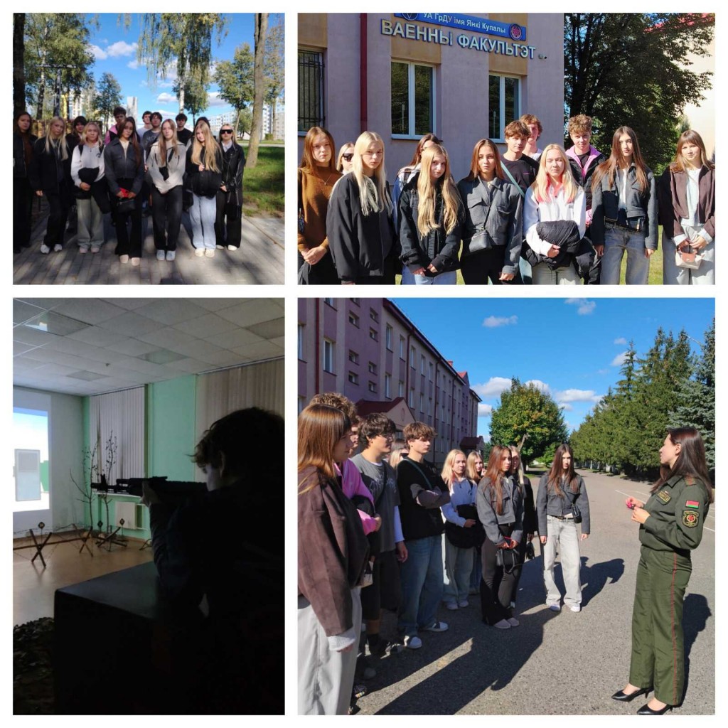 25 сентября 2025 года руководитель по военно-патриотическому воспитанию Чайковская Е. В. совместно с учащимися патриотического отряда «Юные патриоты» посетили военный факультет Гродненского государственного университета имени Янки Купалы. Учащиеся прошли обучение на тренажёре стрелкового оружия, познакомились с бытом факультета, условиями проживания курсантов в казарме и общежитии, приняли участие в сборке и разборке автомата АК-74.