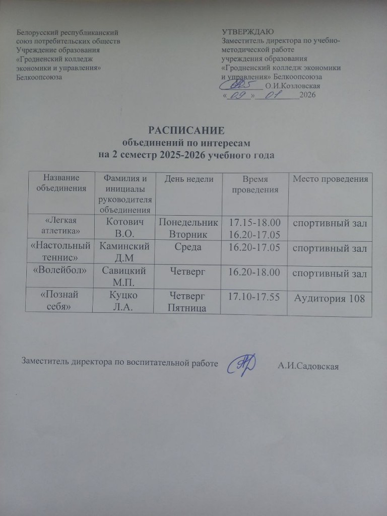 УО «Гродненский колледж экономики и управления» Белкоопсоюза приглашает Вас в объединения по интересам по физкультурно-спортивному, культурно-досуговому, художественному и военно-патриотическому профилям.