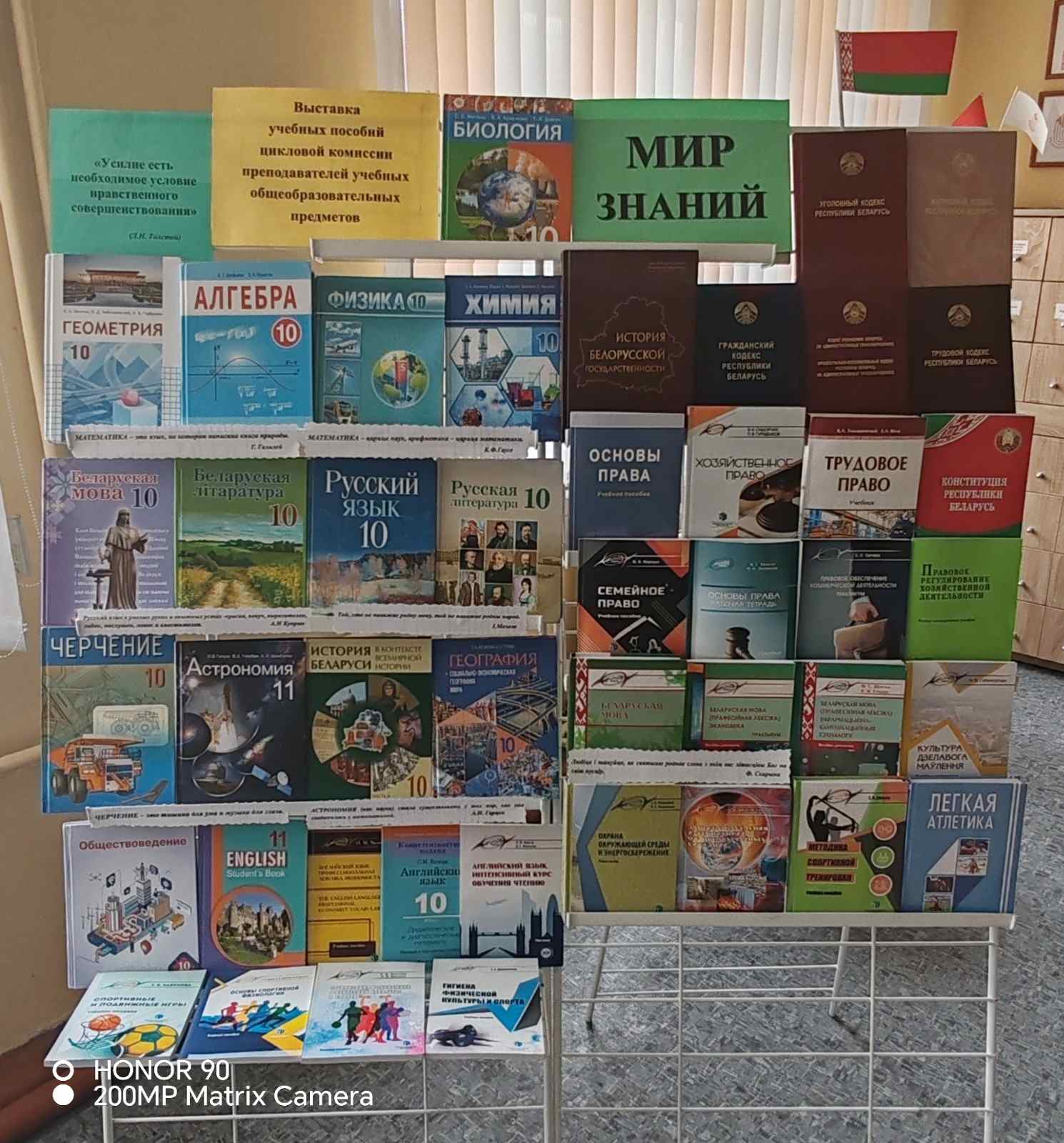 Библиотека является центром для личностного, духовного, творческого развития и самосовершенствования. В рамках декады цикловой комиссии преподавателей учебных общеобразовательных предметов в читальном зале библиотеки колледжа с 23.03.2026 г. проводится выставка – обзор «Мир знаний». Посетителям выставки предоставлена возможность ознакомиться с современными учебными пособиями общеобразовательного компонента.